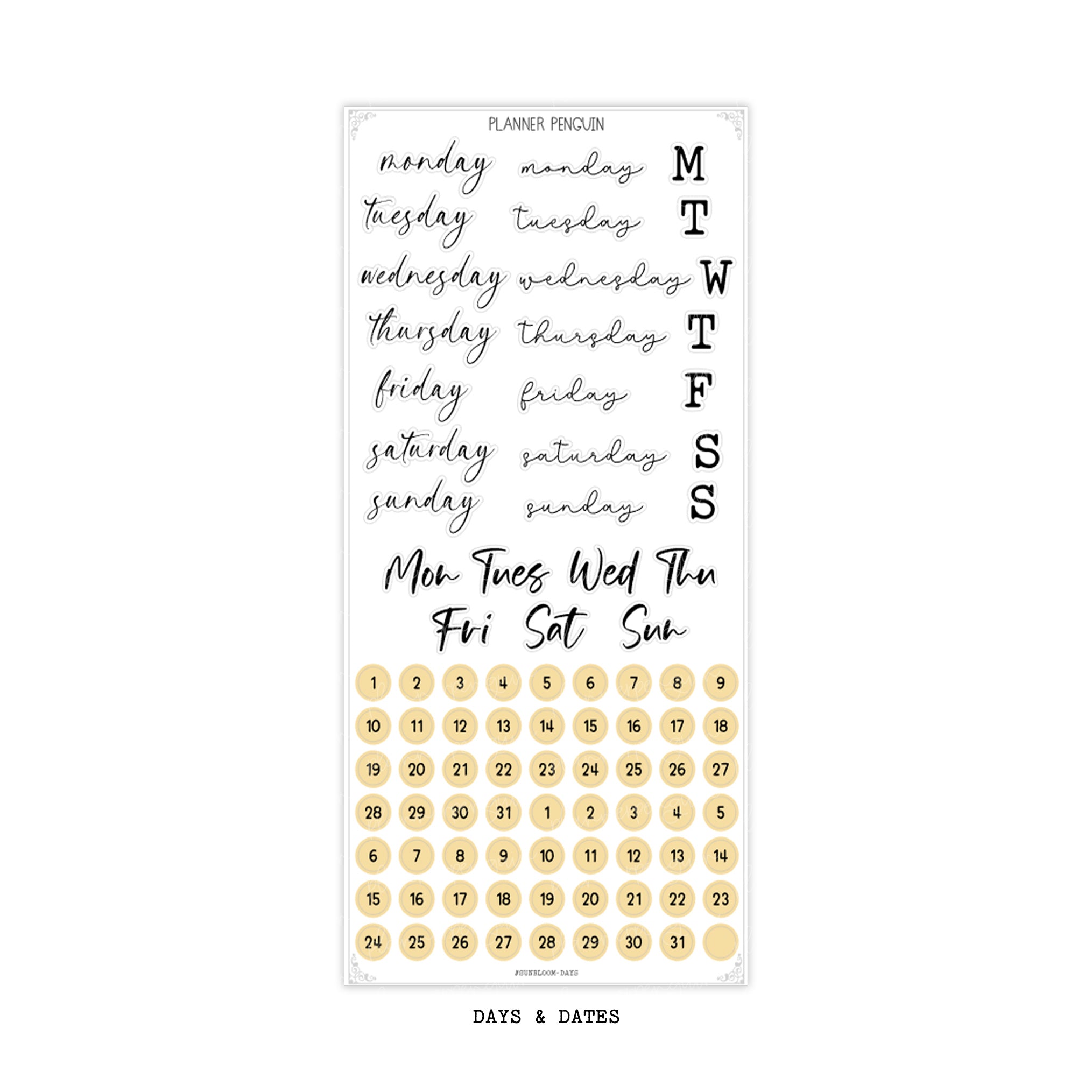 - Removable Matte / Days & Dates - $2.96